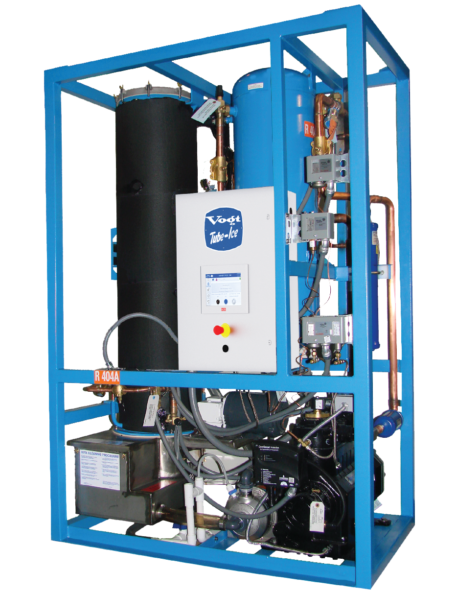 Replacing the Vogt® P118F and P18XT Series models, the HFO10 Series with a capacity of 10 tons of ice per day is Vogt’s® new champion of the mid-size Tube-Ice® machine line utilizing HFO refrigerants with low GDP and low ODP. Available as a self-contained water-cooled unit, the HFO10 will provide you with years of dependable service without the fear of refrigerant obsolescence.