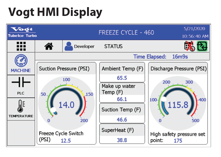 Automatic ICE™ Systems uses Vogt® HFO5 and HFO-10 series ice machines in our medium capacity, 3-10 ton per day, ice-making systems.