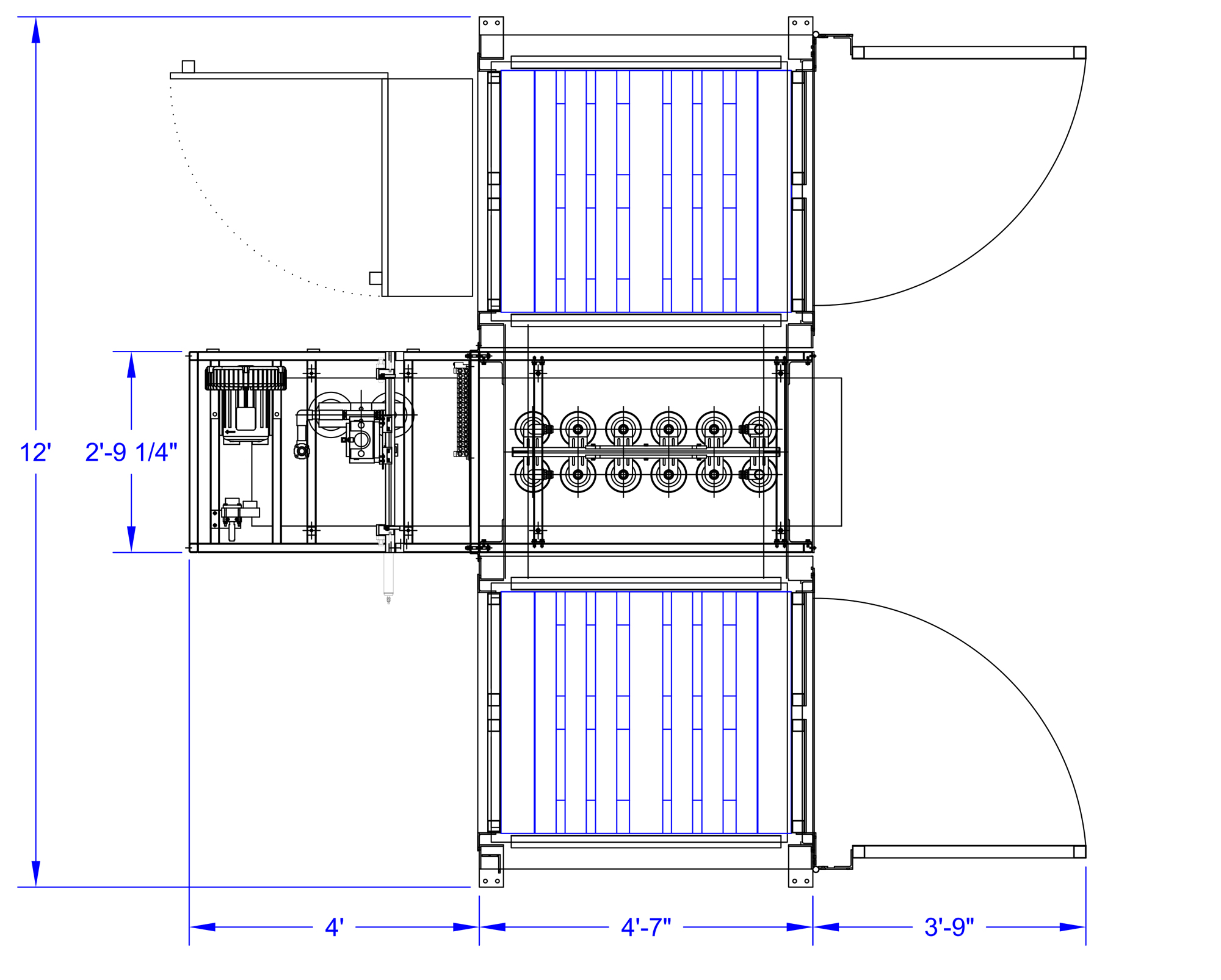 The semi-automatic model SA2 is the perfect solution for medium-size packaged ice producers. This industry proven palletizing machine is a cost-effective way to automatically stack ice packages on pallets for storage and delivery. This machine only requires one operator to remove the finished pallet from the stacking chamber and insert an empty pallet in its place. While the operator manually changes pallets, stacking operations continue uninterrupted in the other stacking chamber. This model features an all new, custom engineered electronic control and integration system utilizing proven Allen Bradley components. This new control platform is much more reliable, productive, and user friendly than previously offered semi-automatic palletizing platforms.